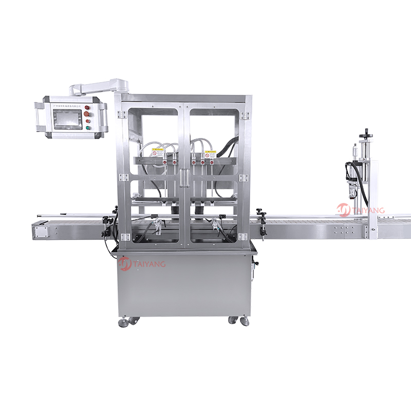 Esta máquina de relleno y tapadeo de líquidos de seis cabezas de Taiyang es principalmente adecuada para varios productos a base de agua, como cosméticos, la industria alimentaria y los solventes de agua de alta goteo, como el champú, el tóner, la loción, la limpieza de líquidos, etc. Ya sea que se trate de producción a pequeña escala o una operación de línea de ensamblaje a gran escala, puede realizar un excelente rendimiento. Esta máquina de llenado y limitación de líquido de seis cabezas de Taiyang es una opción de equipo ideal para la producción de productos a base de agua. Se puede integrar con la máquina de limitación y la máquina de etiquetado en la línea de embotellado. La maquinaria de Taiyang tiene funciones completas y tiene la ventaja del control inteligente.